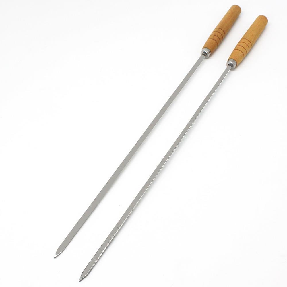 16” Flat BBQ Kebab Skewer | Wooden Handle | Stainless Steel | 1 PC