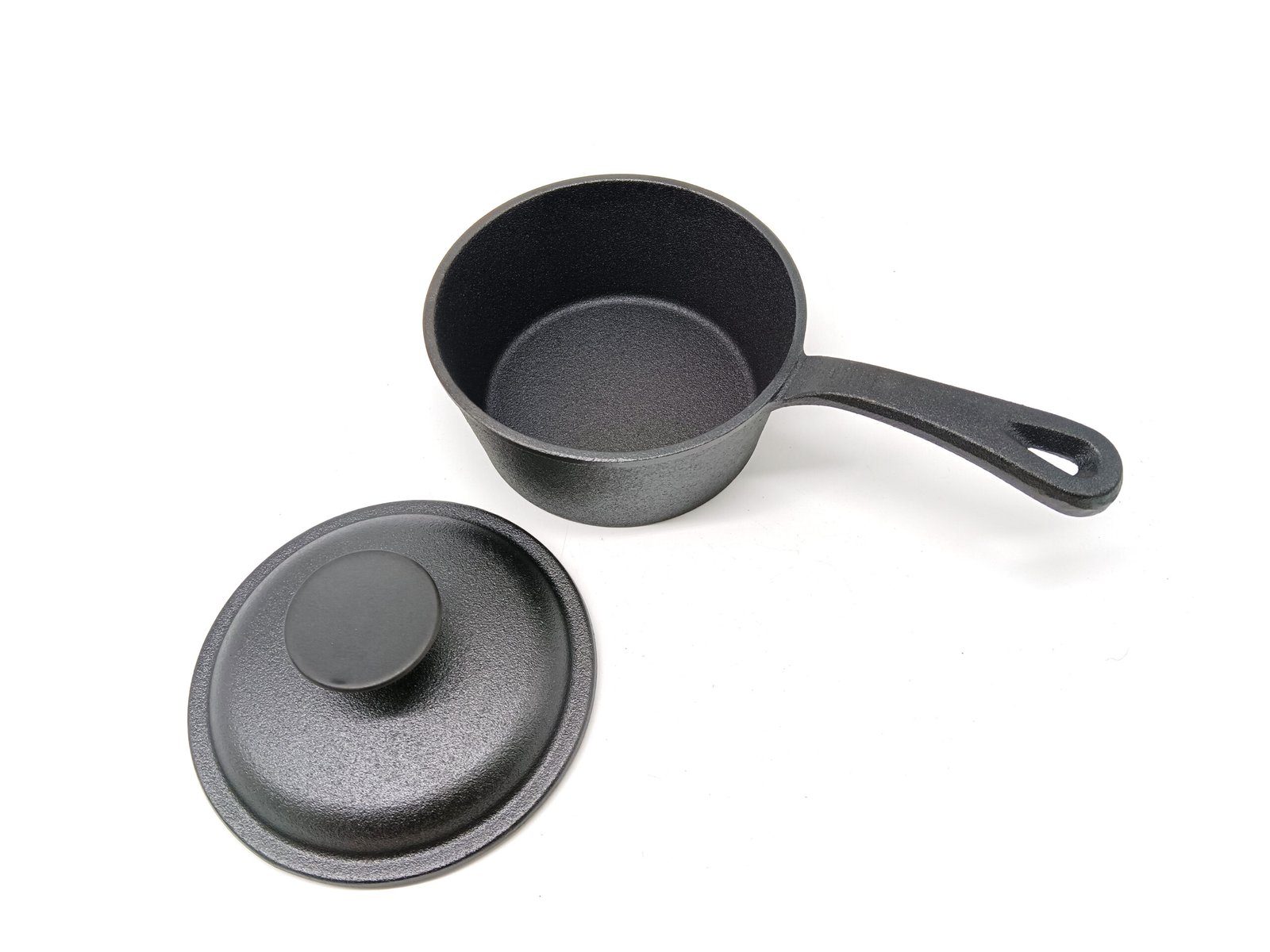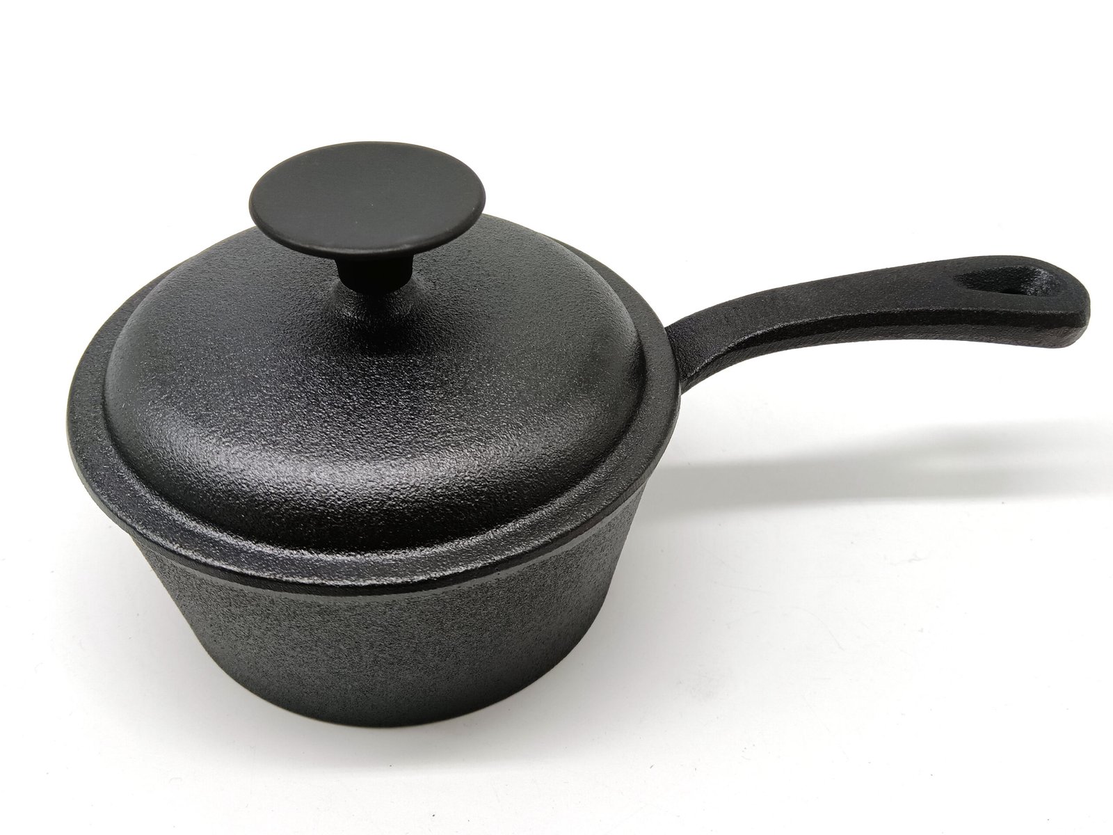 The heavy duty reliable cast iron melting pot with lid is made of high quality material, features durability and long-lasting use. Suitable for kitchen cooking and outdoor sauce melting for grilling.