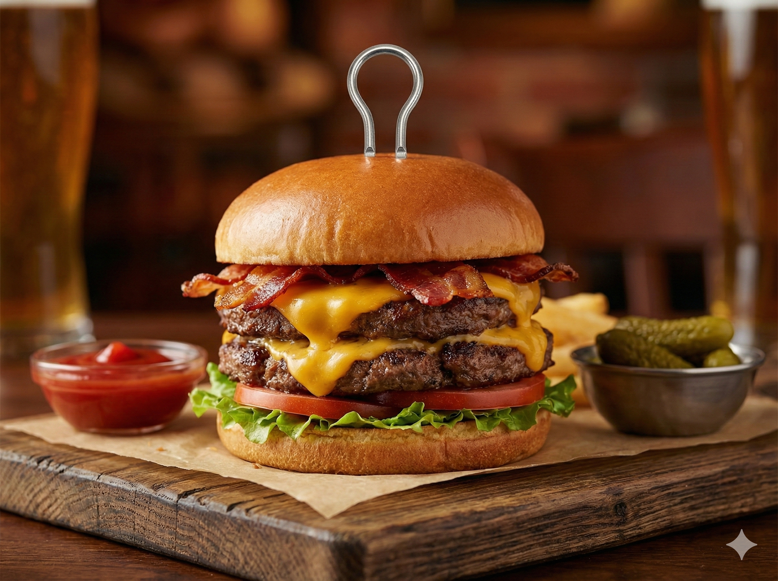 Ideal for BBQ restaurants, catering services, food trucks, hotels, and grilling equipment distributors. The double-prong stability is superior to traditional single skewers, making it easy to secure tall burgers, hold hot corn safely, and create professional bacon-wrapped presentations.