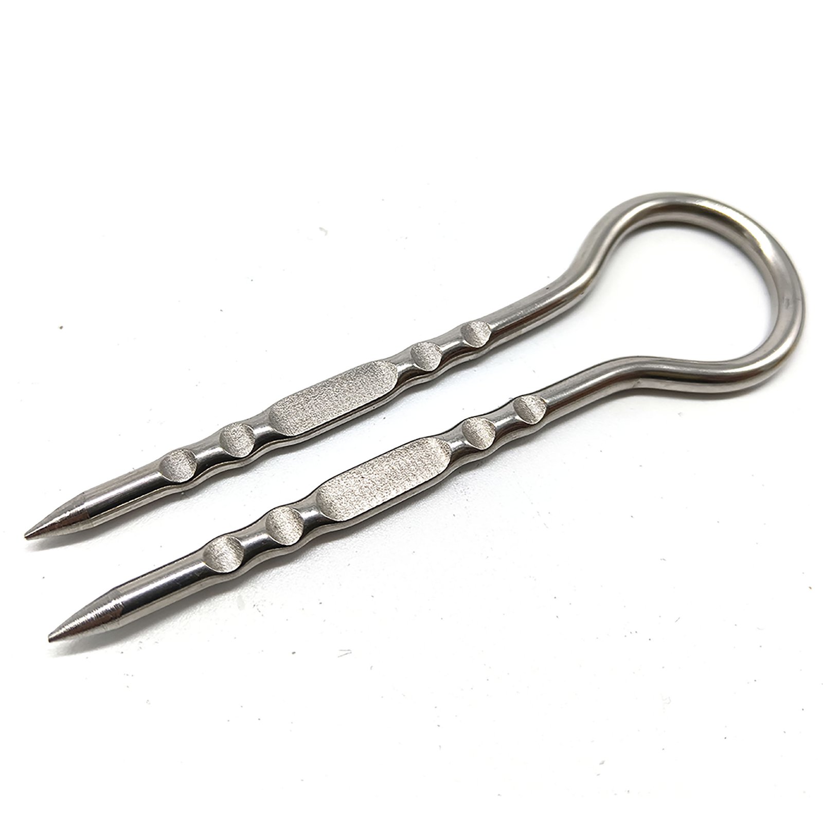Features exclusive two-prong design that prevents food from spinning during grilling. Made from food-grade 430 stainless steel, perfect for corn on the cob, burgers, bacon wraps, and grilled vegetables. Includes premium metal tin case for hygienic storage and portability.