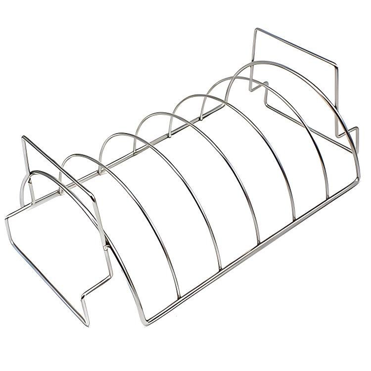 •  The sturdy frame securely holds ribs upright, preventing ribs falling down and ensuring even heat circulation.