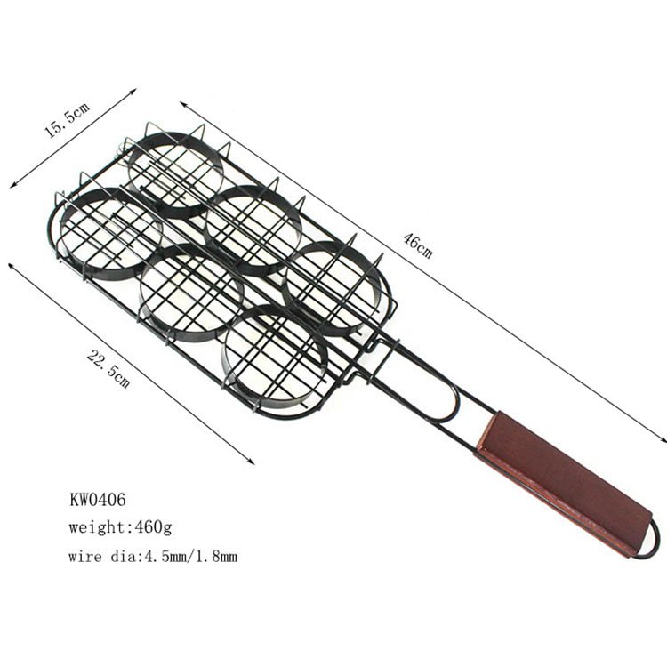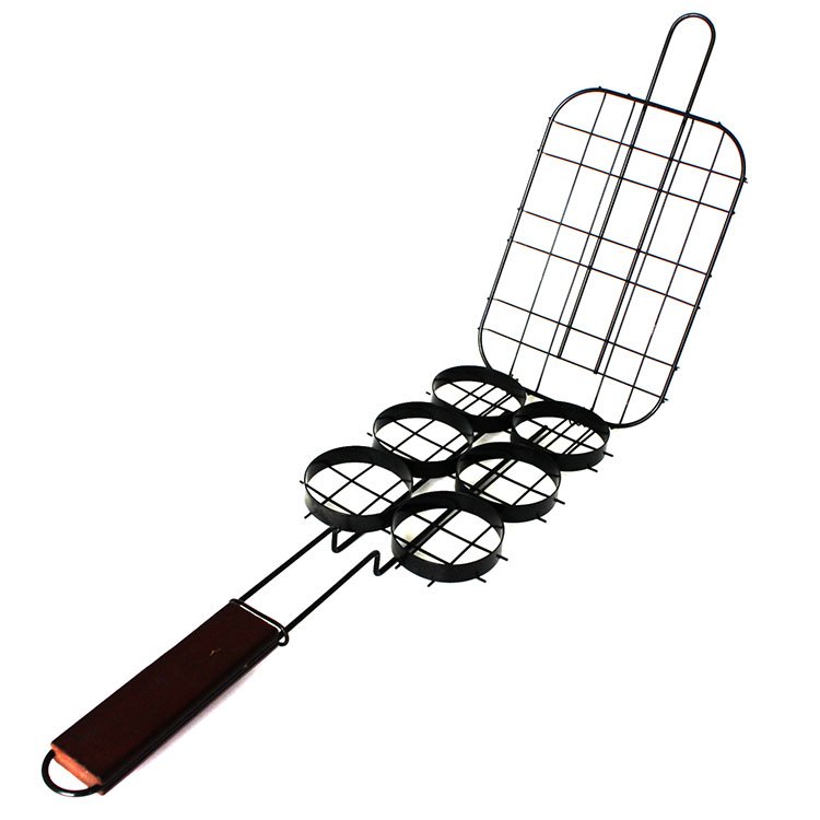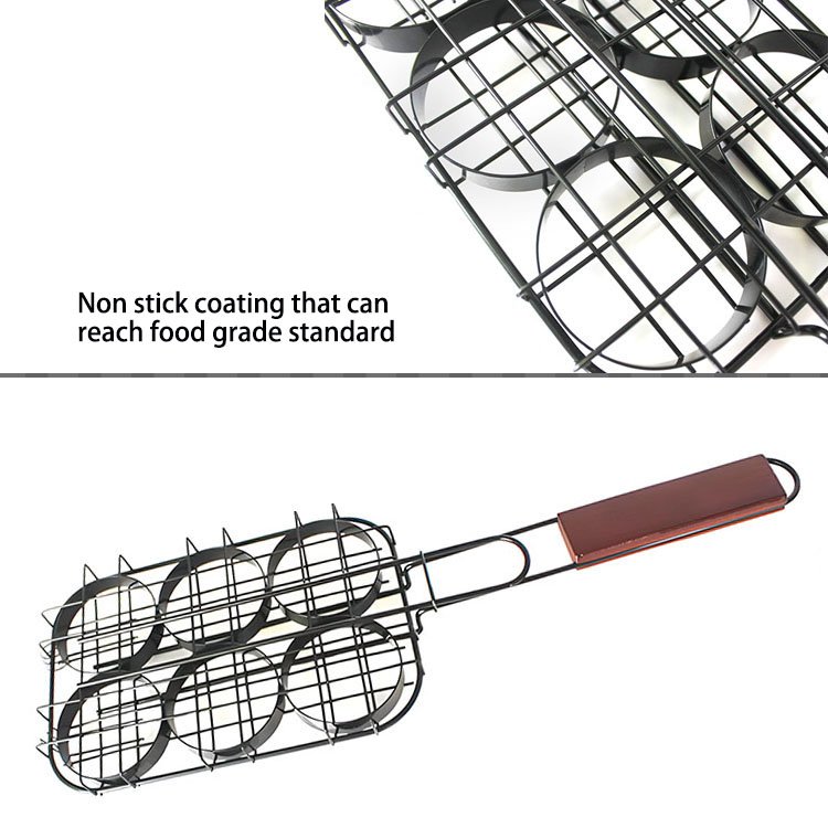 Hamburger Grill Basket for Grills | Non-stick with Wooden Handle