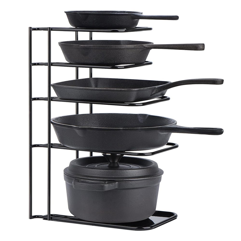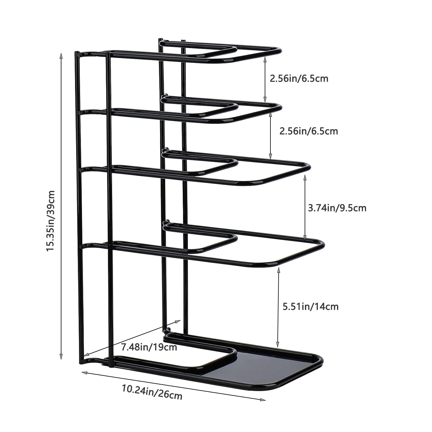 - The rack converniently for hlod up 5 pots and pans, not need to install and disassemble, perfect for the customers with limited kitchen space for storage.