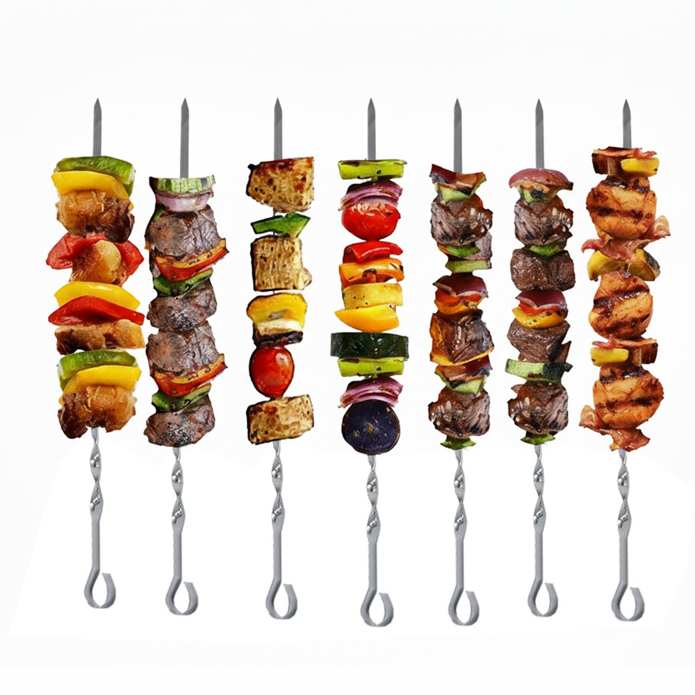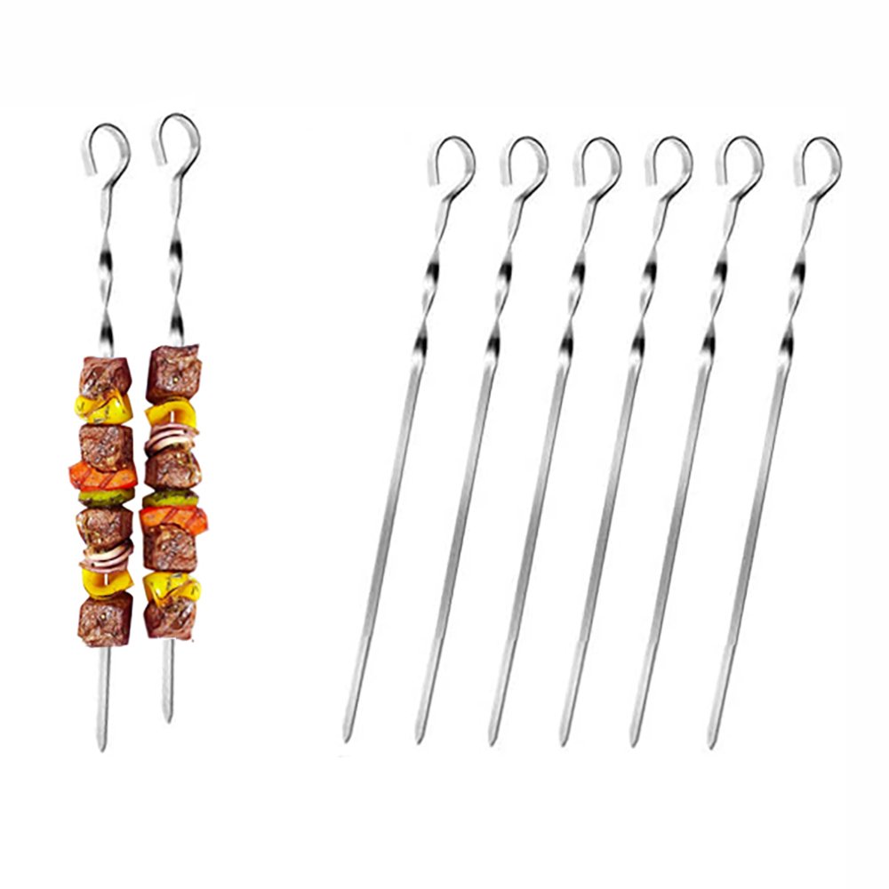 This kebab skewer is build from premium 430 stainless steel, the blade is flat and wide, it stops the skewered food from spinning or moving around when flipping over shish kebab skewers on the grill, features excellent durabe, heat resistant and corrosion resistant, not easy to rust and reusable.
