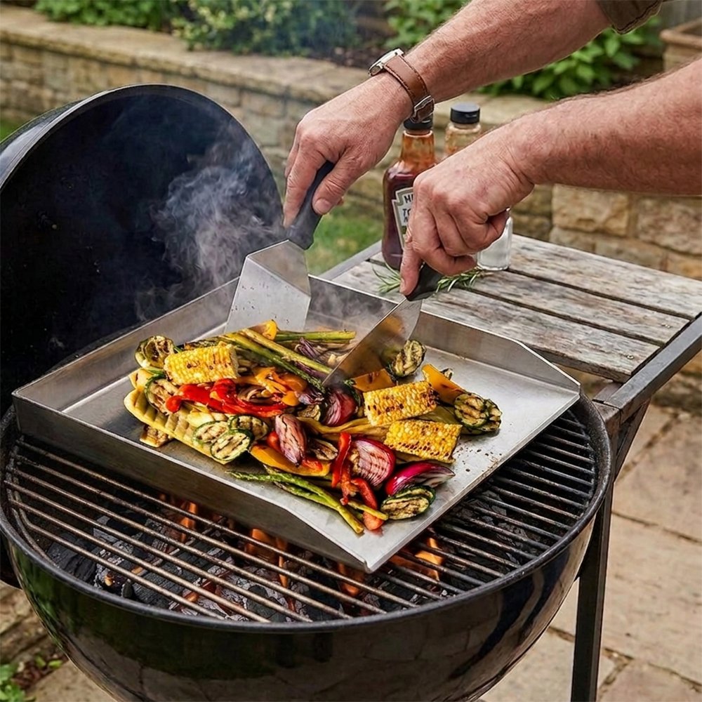 - Heat-Resistant Handles: Non-slip, ergonomic plastic handles designed for safety and comfort during long grilling sessions.
