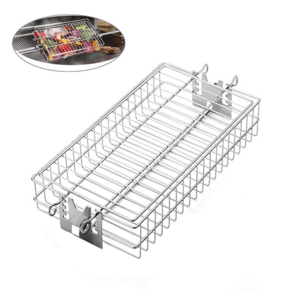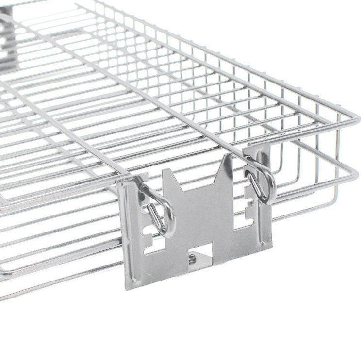 The grill basket is made from made from premium 430 stainless steel, features high tempreture resistance and corrsion resistance, the height of the basket can be adjusted to ensure different grilling space for bbq foods.