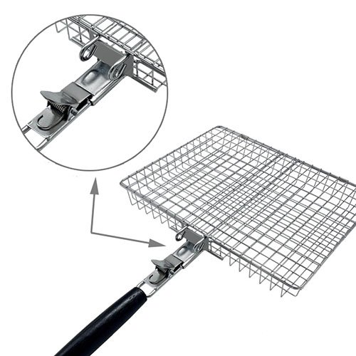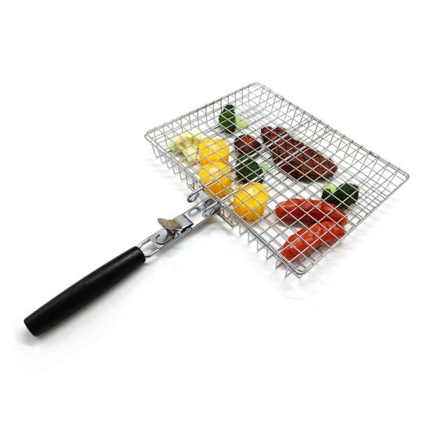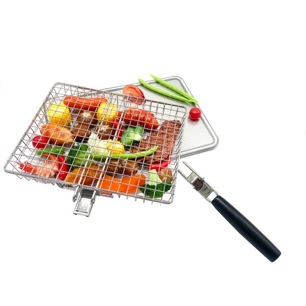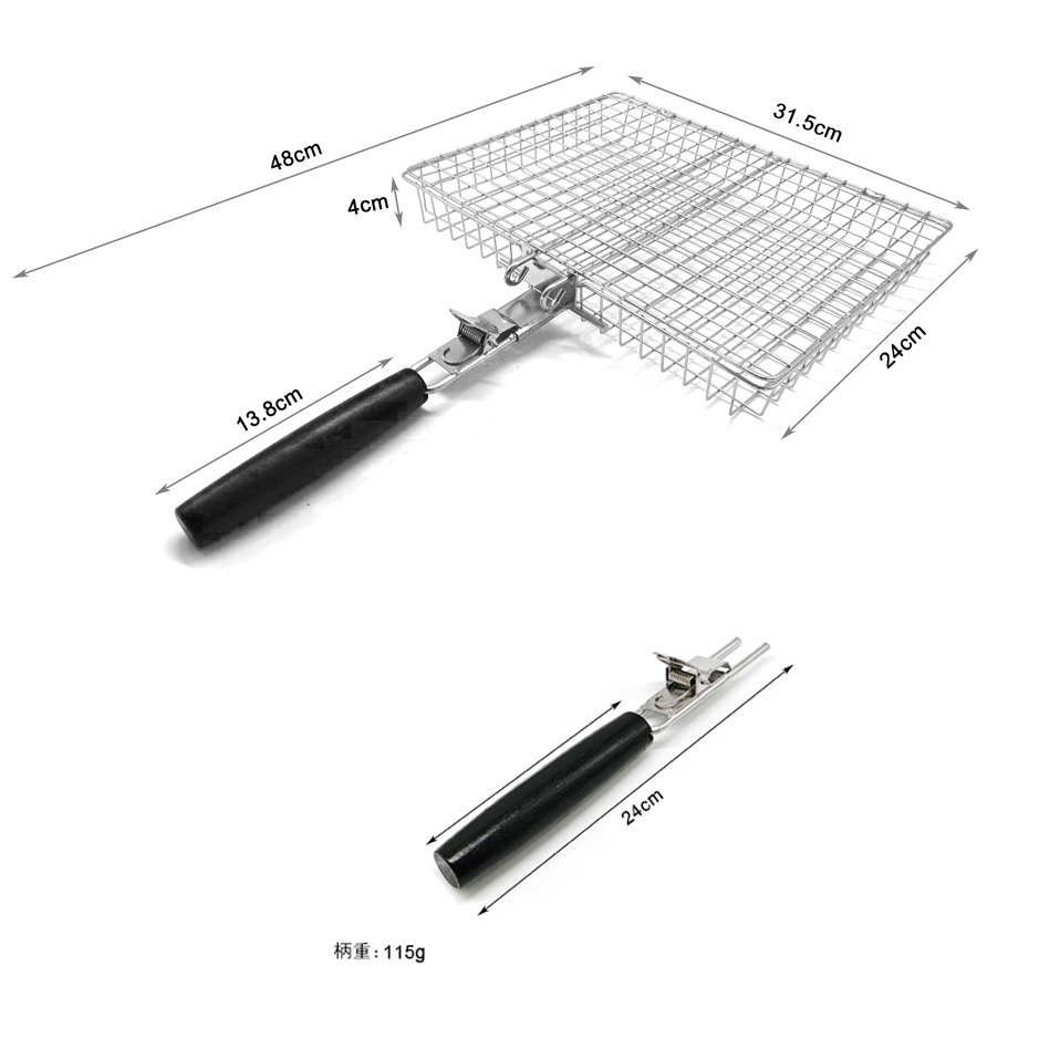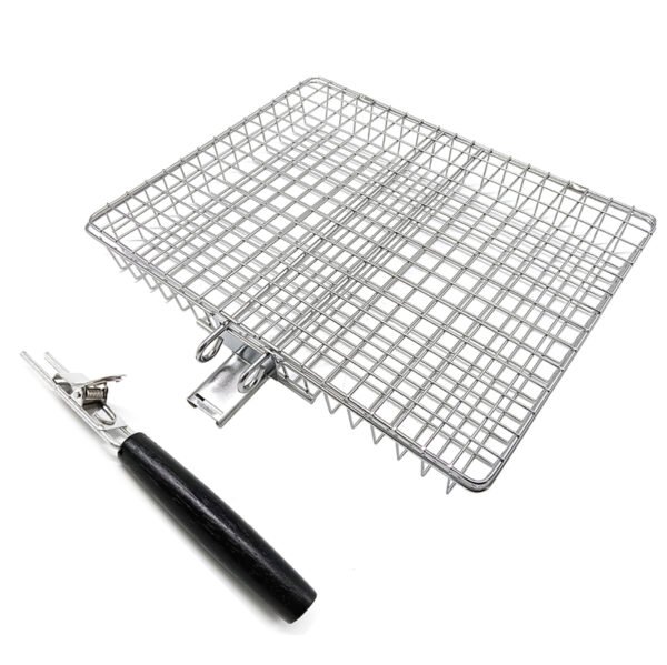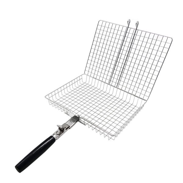Professional Stainless Steel BBQ Basket | Grill Grid with Wooden Detachable Handle