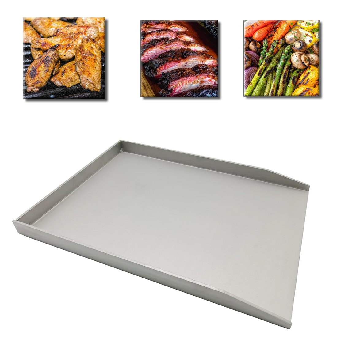 The heavy duty flat top grill tray is made of premium 430 stainless steel, 4mm thick features durable and excellent heat & corrosion-resistance, build to last.